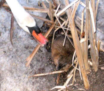 Muskrat populations are going down and mute swan populations are going up and colonizing new areas. It is unlikely that mute swans are the causative factor for the decline in muskrats, but they are not helping the situation either, just as they compromise other native species.