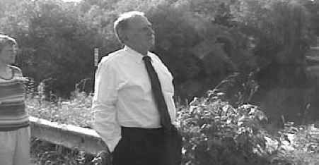 Ann Fanizzi and Peter viewing the lake and geese who had not yet been taken. Photo by Anne Muller