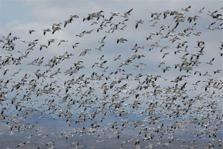 “And then the dawn was pierced by the sonorous cries of seemingly endless flocks of geese that came drifting, wraithlike, overhead. They were flying low that day. Snow geese, startling white of breast, with jet-black wing tips, beat past while flocks of piebald wavies kept station on their flanks.