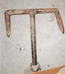 Many times the trap will be set in the ground and a layer of soil will be sifted over it. Leaves are also used to camouflage the set so that it blends in naturally with its surroundings and a well placed trap cannot be seen. The ring at the end of the chain (#4) will be anchored to the ground or an immovable object so that when the animal tries to escape s/he is unable to go far. Sometimes the trap ring will be attached to a “drag” (as shown) which will become tangled in brush as the animal tries to flee. [See Conibear traps below.]