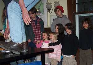 The next group to speak against the use of the land by trappers was In the North Woods Learning Center. Catherine Sklarsky, who takes young children hiking and observing nature in Woodstock and Erik Holmlin of Dharmaware, brought several of the Center’s charges to the meeting. They very effectively demonstrated the way traps operate, and showed how easily an injury could occur should a young child’s foot end up in one of those diabolic devices.